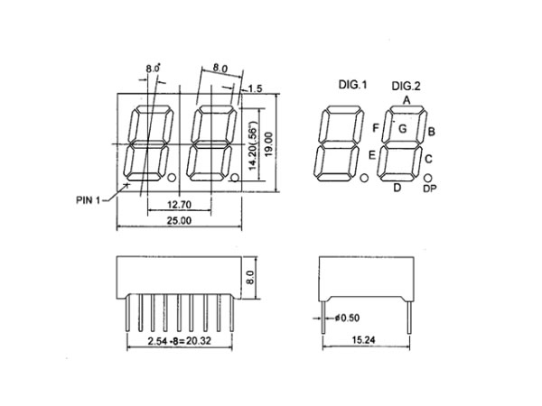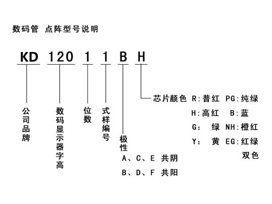 •    數(shù)碼管點陣型號說明